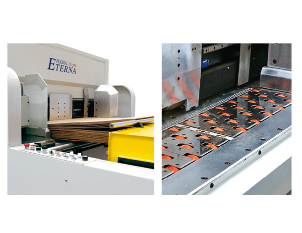 - 特殊的聚乙脂送纸胶轮配合栅栏式托纸架和气垫确保厚重翘曲纸板顺畅输送和纸板的到位精准