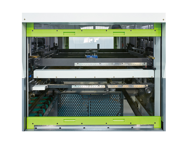 - 前清废装置能够完全清除咬纸边的废料,并由输送带将咬纸边废料送出机外。模板冲程加大,运动曲线更优